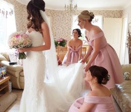 I can also be of help in fitting veils, headpieces, accessories. and also helping the Bride and her entourage into their dresses, to ensure that the whole Bridal Party looks their absolute best. No job is too small; it is all part of the service. I am fully committed to making your Wedding Morning as relaxed and stress free as possible to enable you to enjoy your Day to the utmost.